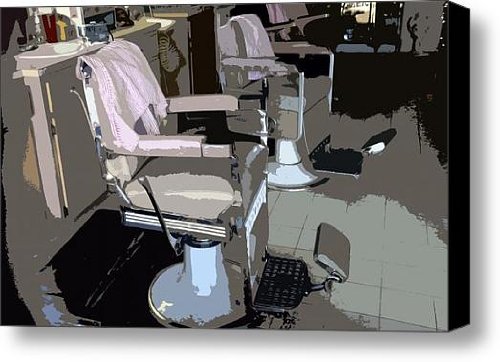 This is a beautiful stretched-canvas print wrapped on 1.5" thick stretcher bars. The print is professionally printed, assembled, and shipped within 2 - 3 business days from our production facility in North Carolina and arrives ready-to-hang on your wall. Fine Art America is home to more than 75,000 artists from all over the world who entrust us to fulfill their print orders online. We offer a 30-day money-back guarantee on every print that we sell and look forward to helping you select your next piece. Keywords: Barber Canvas Print, Chairs Canvas Print, Interior Canvas Print, Old Fashion Canvas Print, Art Canvas Print